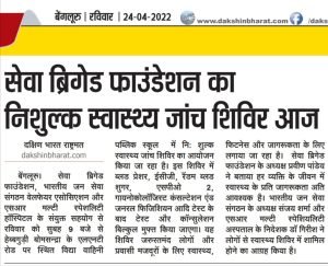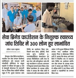 सेवा ब्रिगेड फाउंडेशन भारतीय जन सेवा संगठन वेलफेयर एसोसिएशन और SR Multi Speciality Hospital सहयोग से 24 अप्रैल को सुबह 9:00 बजे से दोपहर 1:00 बजे तक विद्या वाहिनी पब्लिक स्कूल विनायक नगर हेब्बागोडी बोम्मासांद्रा में एलएंडटी रोड बोम्मासांद्रा औद्योगिक क्षेत्र अनेकल तालुक बंगलौर-560099 में नि: शुल्क स्वास्थ्य जांच शिविर का आयोजन किया गया.