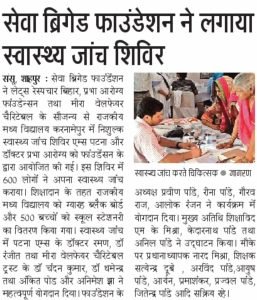 We Seva Brigade Foundation in association with Let’s Inspire Bihar organized Health Checkup Camp & provided 12 Blackboard & 500 School Stationary Kits in village. Karnamepur Bhojpur District Bihar . We will be oranised Health check-up Camp in which 500 people has joined the camp who all are treated by doctors from AIMS Patna lead by Dr Raman